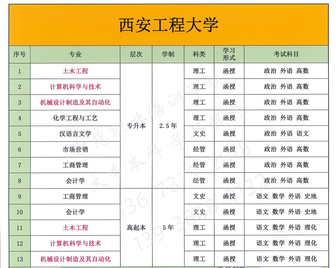 西安工程大学--成人大专本科学历