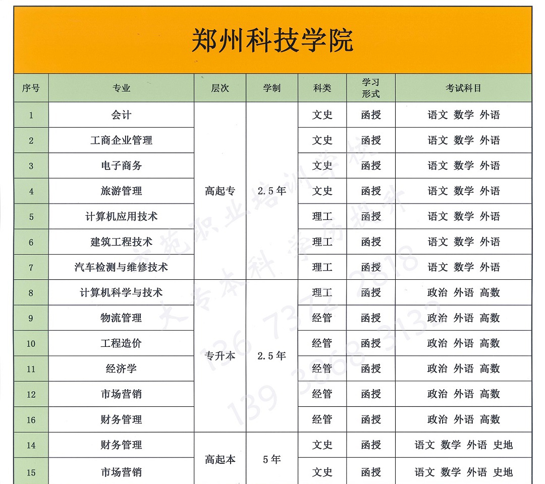 郑州科技学院--成人大专本科学历